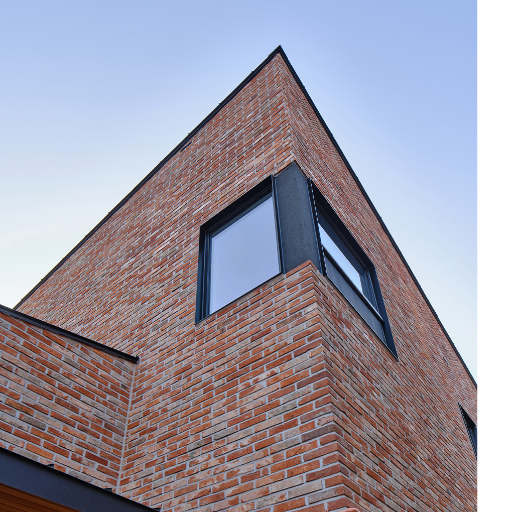 붉은 벽돌과 다양한 형태의 창_
